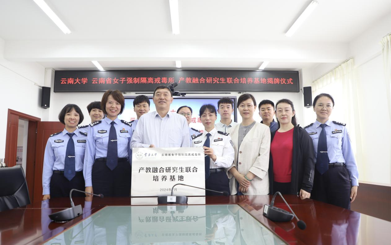 揭牌仪式上,pp电子官方网站院长王宗平与云南省女子强制隔离戒毒所所长杨青共同为“产教融合研究生联合培养基地”揭牌。双方代表、师生代表及戒毒所工作人员等参与此次活动。