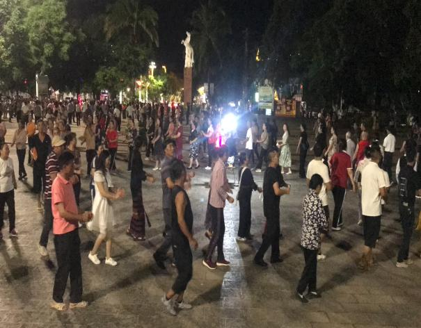 傍晚,同学们与打歌传承人尹国卫座谈结束后,前往白马广场观摩和访谈打歌民众,再次体会打歌的独特魅力。
