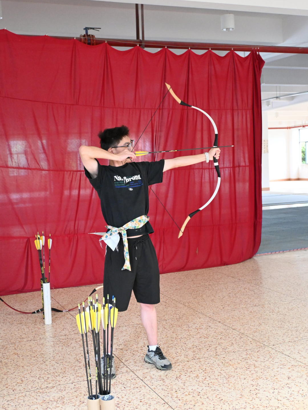 传统项目在本学期焕发新活力。少数民族打跳现场,同学们沐于悠扬乐声之中,循着明快节律踏歌而舞;女子篮球赛中,“巾帼英雄”以无畏勇气和卓越球技书写了精彩篇章;排球比赛现场,队员们积极配合,精准发球、巧妙传球、奋勇扣杀、顽强防守;足球场上,各学院球员们的精彩表现赢得了阵阵喝彩;乒乓球台前,选手们你来我往展现了国球魅力的激烈对决;羽毛球馆里,师生联谊赛让教与学的界限在运动中消弭。特别值得一提的是传统弓比赛,同学们不仅掌握了射箭技巧,更以箭为媒,共同传承和弘扬了中国传统射艺文化,深刻体会到了“发而不中,反求诸己”的传统文化精髓。