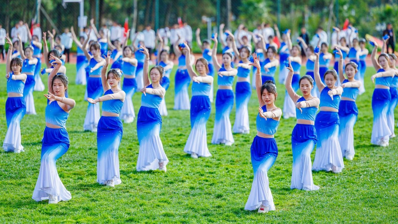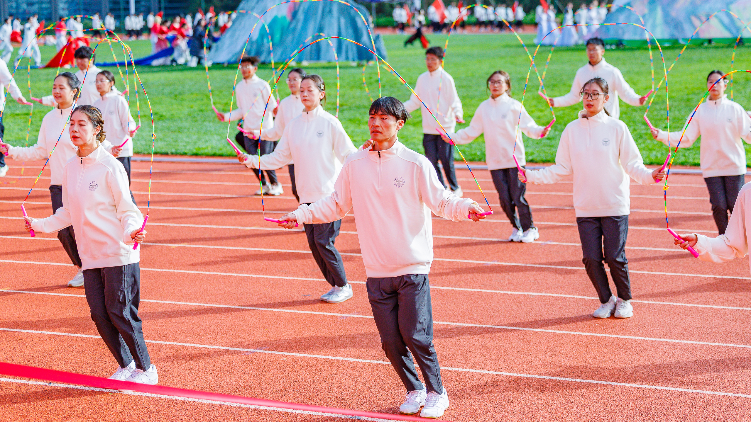 《跃动青春》的跳绳表演充满活力和节奏感,展现了青年学生的蓬勃朝气。