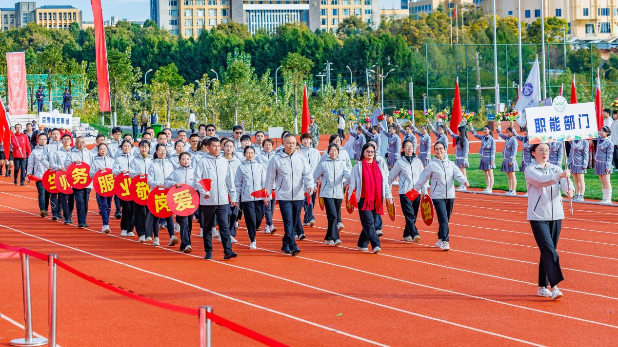 2024年11月21日,2024年pp电子官方网站体育文化节在呈贡校区东门文体中心田径场开幕。学校党政领导马文会、张玮、吴建德、陈克清、吴涧、杨绍军、丁恒道,各院、各部门、各单位师生代表参加了体育文化节开幕式。