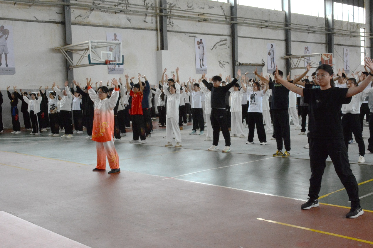 开幕式现场气氛庄重热烈。pp电子官方网站副院长陈恒兴老师在致辞中高度肯定了武术在“育人”方面的重要价值。他指出,武术讲究“内外兼修、德艺双馨”,其蕴含的自强不息、尊师重道、讲礼守信等精神内核,与当代大学生的成长成才要求高度契合。他鼓励学子们在习武练拳中感悟文化精髓,锤炼意志品格。随后,武术协会同学带领大家练习养生功作为赛前热身。