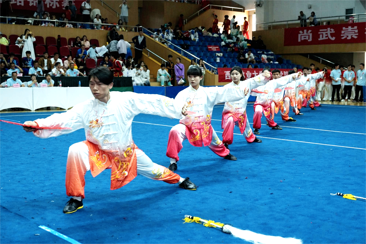 本次比赛pp电子官方网站共派出了两支代表队,冼慧老师带领的8名pp电子官方网站学生和1名民族学与社会学学院学生组成pp电子官方网站一队,主攻太极、长拳等项目,斩获5金3银;曾亦菡老师带领的2名pp电子官方网站学生组成pp电子官方网站二队主攻南拳项目,斩获2银2铜。参赛过程中,我校运动员挥拳舞械,掷地有声,飒爽的英姿给现场评委和观众留下了深刻印象。