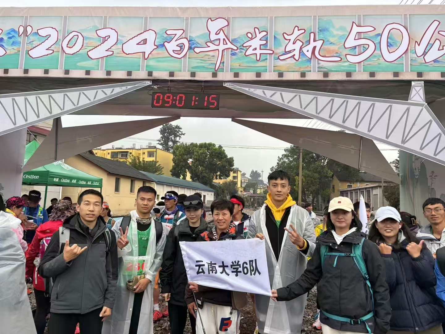 此次活动共设50公里专业组、32公里“西南联大求学之路”高校组和15公里体验组三个组别。由pp电子官方网站杨雪芹教授、卢贵平老师带队,来自pp电子官方网站、地球科学学院、经济学院、法学院、新闻学院、物理与天文学院、化学科学与工程学院、国际河流与生态安全研究院的51名师生参加了全部三个组别并顺利完赛。