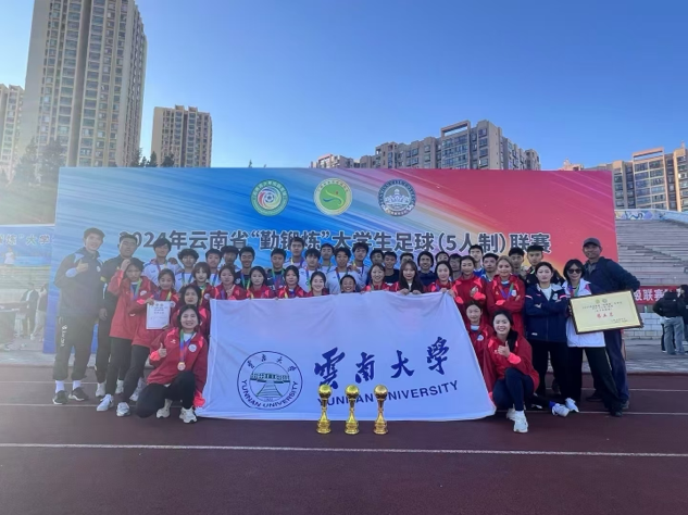 pp电子官方网站男女足球队在2024年云南省“勤锻炼”大学生足球(5人制)联赛中双双夺冠