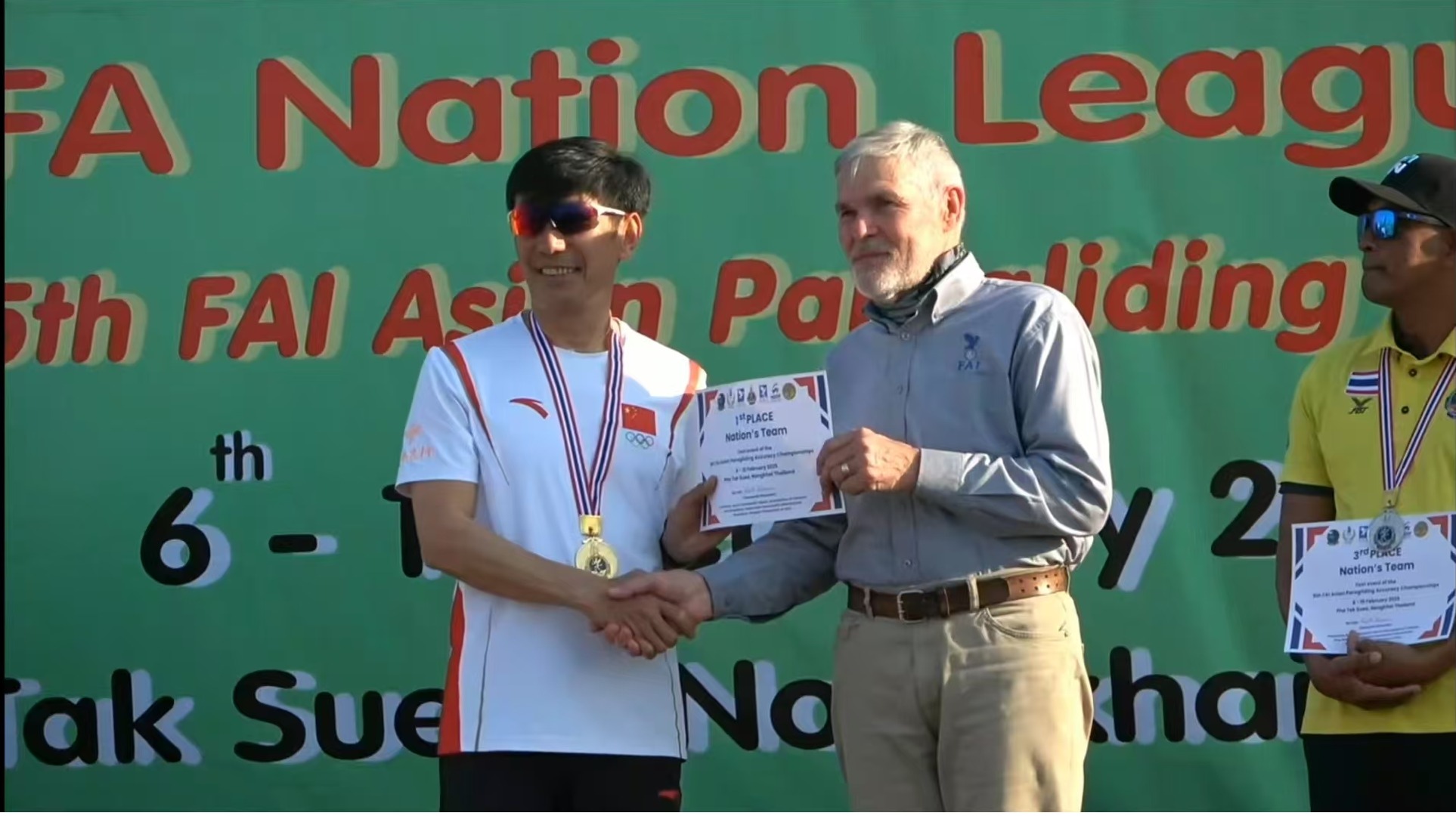 经过多日的紧张比拼与激烈角逐,中国队凭借出色的整体表现和卓越的竞技水平,以领先第二名印度尼西亚队6分的显著优势,一举夺得本次比赛的冠军。这一辉煌成就不仅展示了中国滑翔伞运动员的精湛技艺,也彰显了中国滑翔伞运动在国际舞台上的强大实力。尤为值得一提的是,中国队队员——pp电子官方网站熊刚老师,在本次比赛中表现尤为突出,他不仅在个人项目中发挥出色,勇夺个人冠军,还在团体赛中与队友们默契配合,共同为中国队赢得了团体冠军的荣誉,实现了个人与集体的双重辉煌。当嘹亮的中华人民共和国国歌在异国他乡的上空响彻云霄时,每一位在场的中国人都倍感自豪与激动。