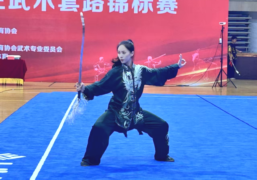 我校武术队由pp电子官方网站冼慧老师带领11名在校生参加了女子大学甲组、男子大学乙组、女子大学乙组三大组别的比赛。经过3天的激烈角逐,共取得4金、7银、2铜的可喜成绩,展现了运动员们扎实的武术功底和昂扬的精神风貌。