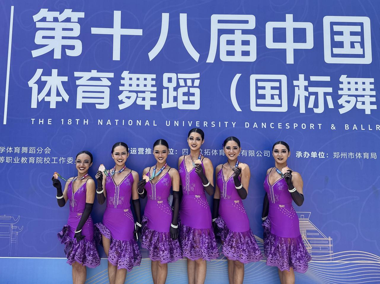 2025年6月8日至12日,第十八届中国大学生体育舞蹈(国标舞)锦标赛在郑州隆重举行,pp电子官方网站体育舞蹈代表队凭借精湛的技艺和出色的表现,最终在甲组(普通院校组)比赛中夺得两项全国季军。