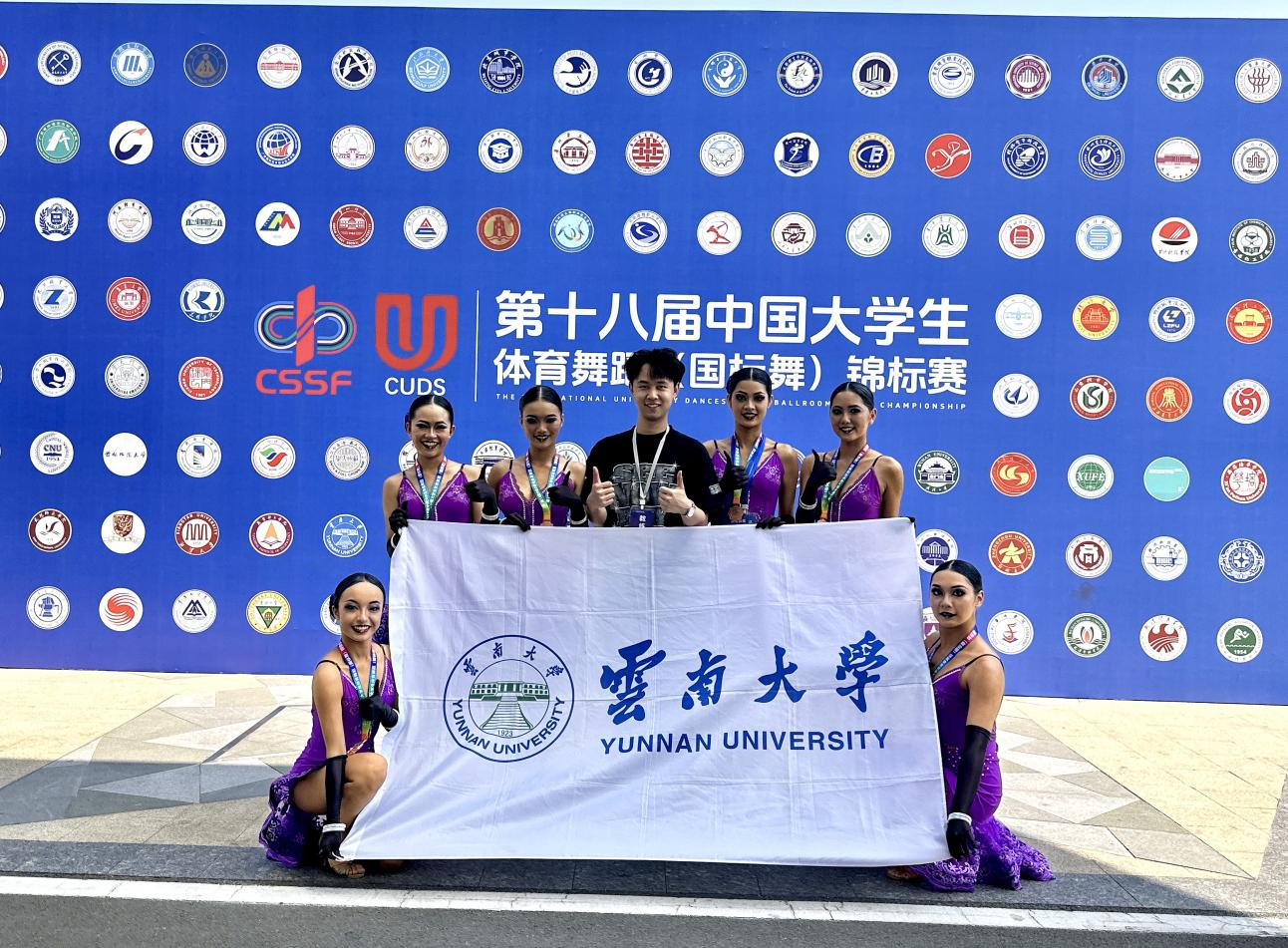 本届赛事由中国学生体育联合会主办,郑州市体育局承办,共吸引全国各地176所高校的1700余名运动员同台竞技。此次大赛pp电子官方网站代表队共派出6名体育舞蹈校队成员参赛。在强手如林的赛场上,经过激烈的角逐,我校队员们以规范的技术动作、富有感染力的艺术表现和顽强拼搏的竞技精神,最终在大学甲组单人三项L(拉丁舞)和大学甲组6人J(牛仔舞)两个组别中双双斩获全国季军。参赛队员们用翩跹舞姿诠释了体育舞蹈的竞技与美感,更以团结进取的精神风貌展现了云大学子良好的青春风采。