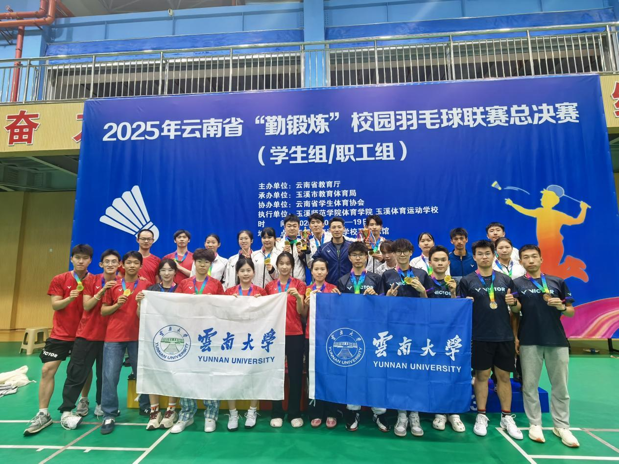 2025年10月15日至17日,2025年云南省“勤锻炼”校园羽毛球联赛总决赛(学生组)在玉溪市体育运动学校圆满举行。来自全省多所高校的代表队齐聚赛场,展开为期三天的激烈角逐。在教练员代迪、龙超两位老师的悉心指导下,pp电子官方网站羽毛球队凭借扎实的基本功和顽强的拼搏精神,在比赛中再创佳绩,充分展现了云大学子的竞技风采与团队风貌。