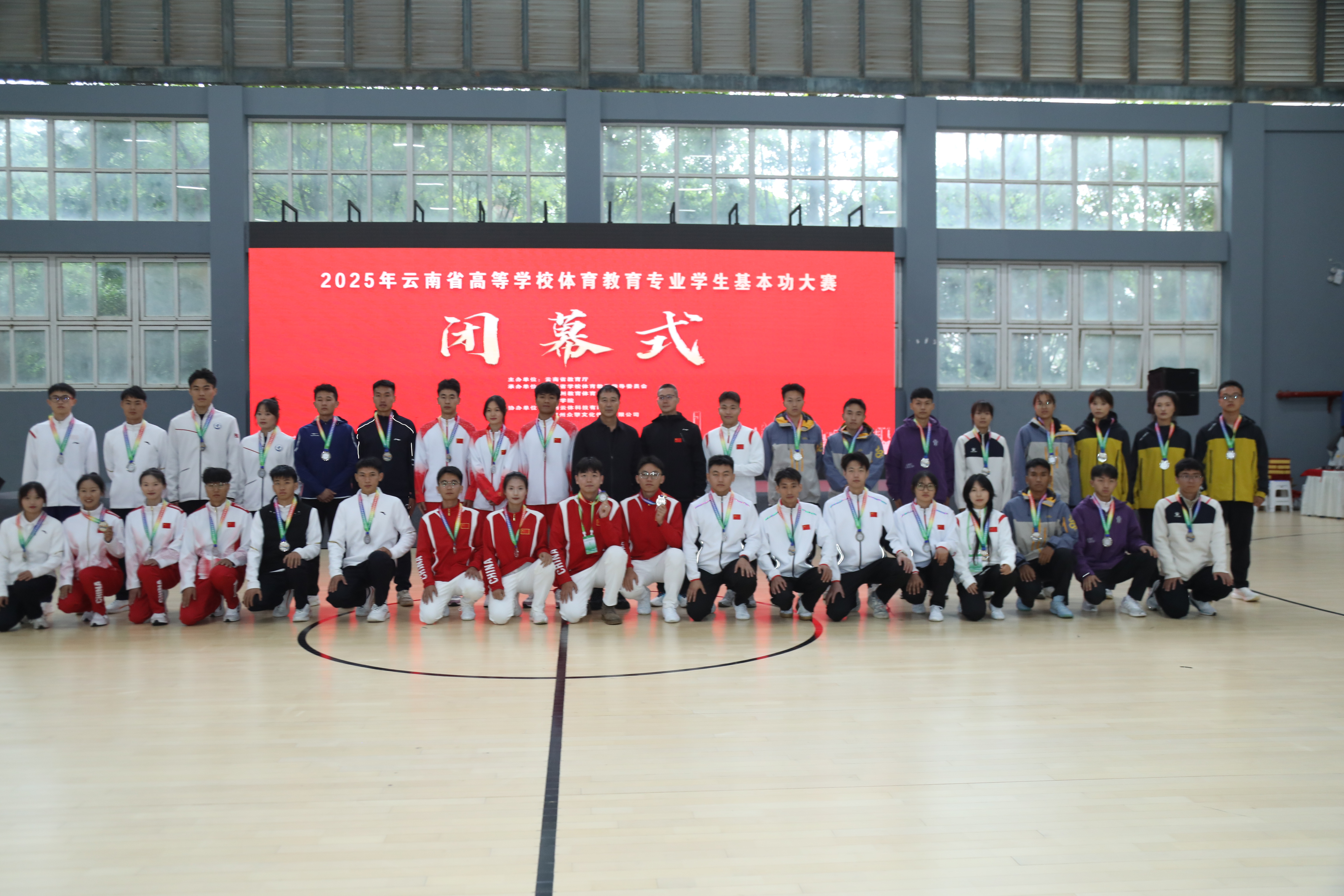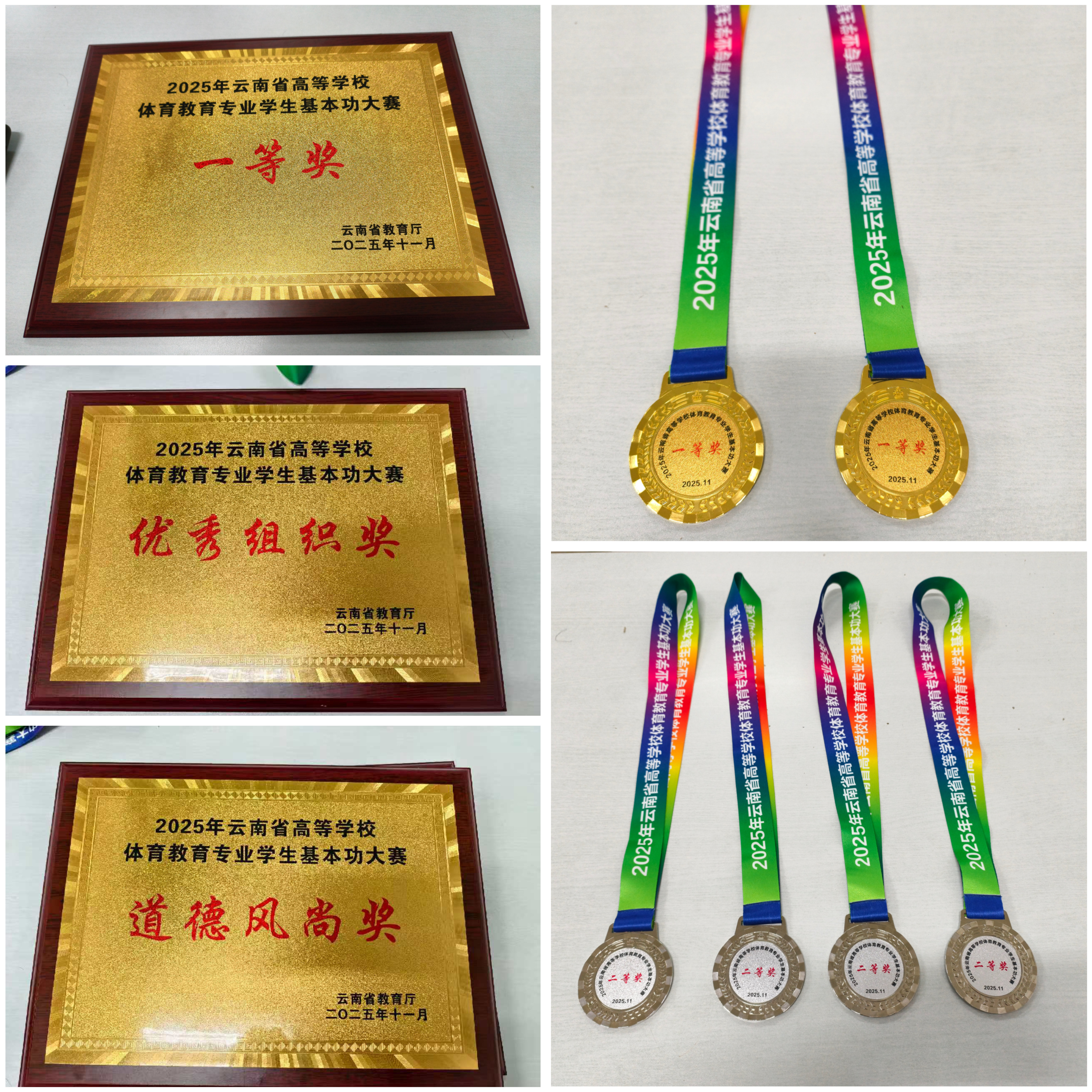 2025年11月3日,云南省高等学校体育教育专业学生基本功技能大赛在红河学院圆满落幕,来自省内20所高校的120名体育教育专业学生参加了此次大赛的角逐。pp电子官方网站代表队凭借扎实的专业功底、精湛的运动技能和出色的团队协作,从全省参赛队伍中脱颖而出,一举斩获团体一等奖,同时摘得个人一等奖2项、个人二等奖4项,荣获优秀教练员、优秀组织奖、道德风尚奖,充分展现我校体育教育专业人才培养的丰硕成果。