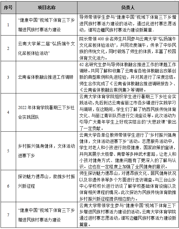 长期积极致力于推动中国特色社会主义体育文化的繁荣发展。每年组织学生进行三下乡实践活动,开展红色教育、专业交流等活动。为庆祝全国第15个“全民健身日”,科学指导群众性体育运动,进一步增强社会体育指导员服务意识,提升科学健身指导技能和理论水平。8月1日pp电子官方网站的“社会体育指导员进村寨社科普及志愿服务队”从昆明出发,到达西双版纳州勐遮镇曼拉村。开展以“建设文化强省、传承红色基因”、“健康锻炼宣讲助力村寨老年人健康知识以及锻炼知识普及”等主题文化宣讲活动。