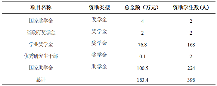 本学位点对于体育硕士专业学位研究生提供的奖助学金资助主要包括研究生国家奖学金、研究生省政府奖学金、研究生学业奖学金、优秀研究生干部奖学金、国家助学金等,其中研究生学业奖学金和国家助学金是100%全覆盖,2022年pp电子官方网站研究生获得奖学金的情况如下表所示: