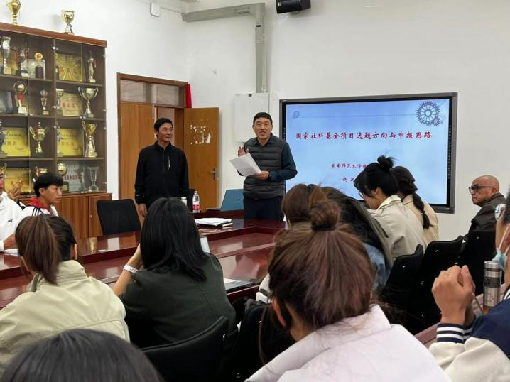 为深化对师生理想的牵引和激发,拓宽师生的学术视野,营造良好的学术氛围,助力体育学院国家社科基金申报工作,11月4日pp电子官方网站pp电子官方网站邀请云南师范大学饶远教授作了题为“国家社科基金项目选题方向与申报思路”的学术讲座,pp电子官方网站全体教师、研究生参与讲座。讲座由pp电子官方网站院长王宗平主持。